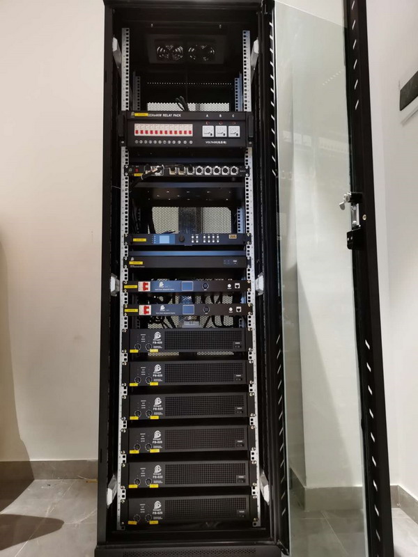 上圖為學(xué)校多功能報(bào)告廳機(jī)房
