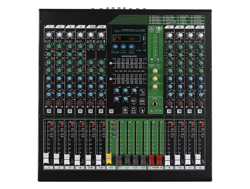 技術(shù)參數(shù) 12通道設(shè)計,8路MIC單聲道+2路立體聲輸入 單聲通道100Hz低頻衰減開關(guān)(高通濾波) 每通道3段參量均衡,單聲道帶掃頻 4輔助編組輸出,2推子前折返,1衰減后輔助,1衰減后效果 3組...